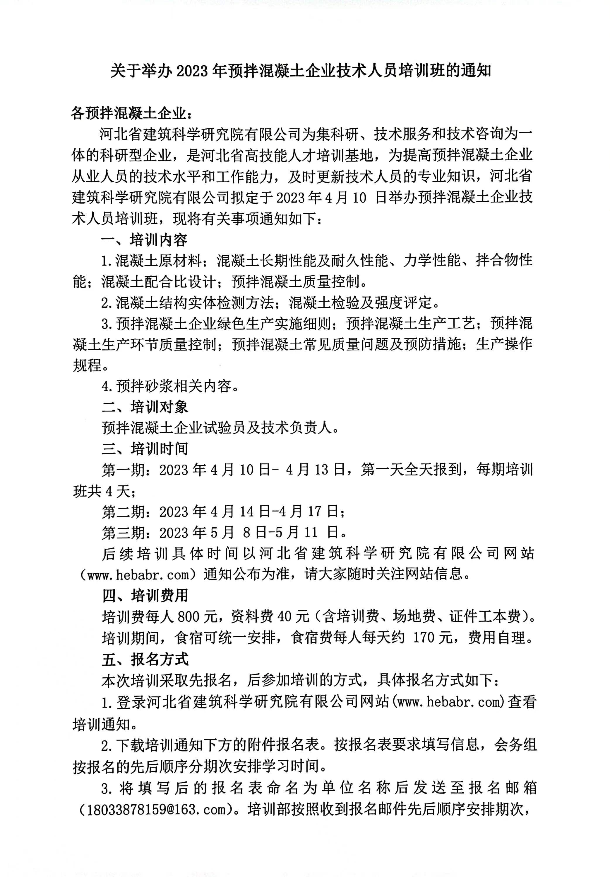 2023年預拌混凝土企業技術人員培訓班報名表